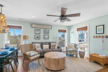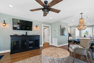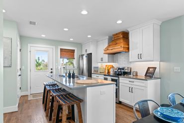 PURE bliss awaits inside the cozy, sun-drenched living area while you catch up on your favorite shows from the plush sofa or play board games at the dining table. With ample seating and charming beach decor, everyone can kick back and relax with ease. As the sun begins to set and the sky morphs into hues of pink and gold, kick up your feet in one of our comfortable plush chairs with cushioned ottoman on the front porch and relish the great company and swaying palms. Even better, roast marshmallows around the firepit and reminisce about another day in paradise. Great thought has been given to provide you the ultimate experience while relaxing and enjoying time with those that are special to you.