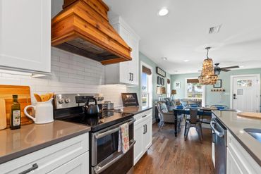 DINE IN or OUT When mealtime arrives, whip up a delicious dinner in the FULLY-stocked kitchen with stainless steel appliances or host a summertime barbecue on the patio. A dedicated beverage fridge keeps cold drinks on hand and saves room in the fridge for family meal provisions. Prepare your CATCH OF THE DAY at our fish station equipped with a spacious cleaning surface, a sink with running water, and proper disposal, it ensures a hassle-free experience. Dine Out: Consider a short walk up the street to KILLER'S Seafood/Tex Kitchen, local favorites and located just a block up on Hwy 98. Eat there or bring back and eat on our deck which offers comfortable cushioned Erwin & Sons Patio Furniture and listen to the waves crashing!